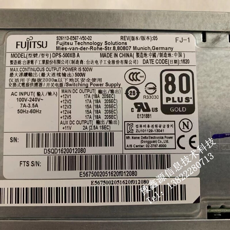 Fujitsu W530 W550 M730 S26113-E567-V50-02 S26113-E567-V50-02 DPS-500XB A Power Supply