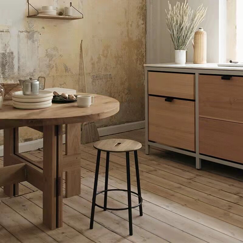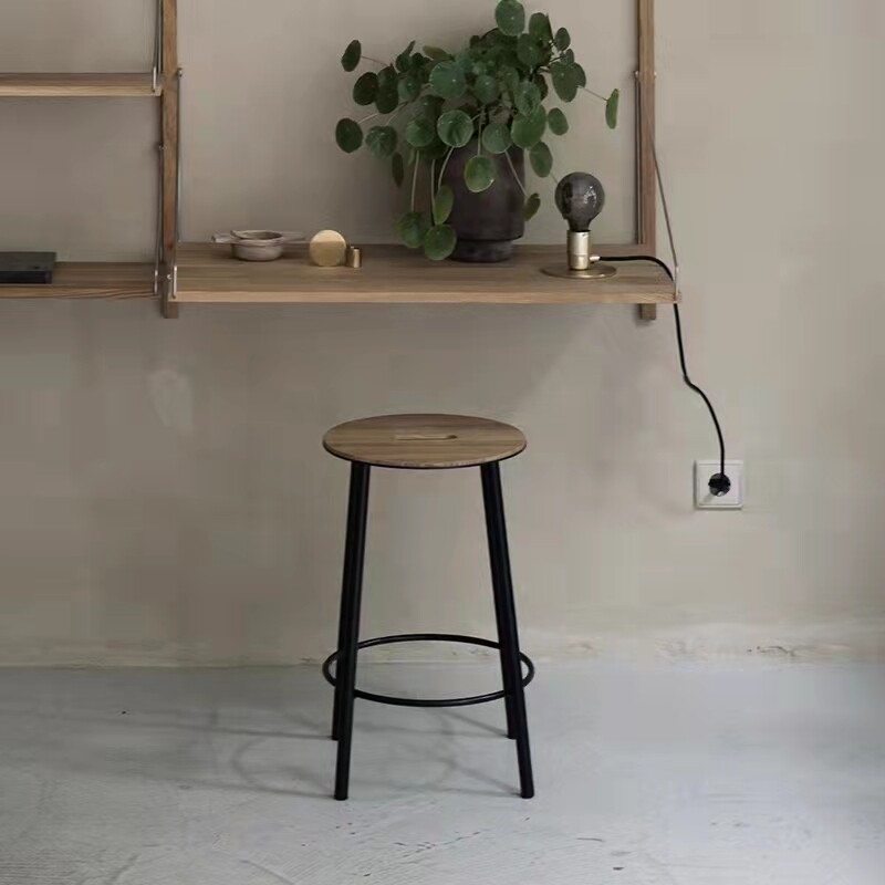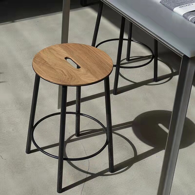 Nordic iron high chair simple bar stool industrial style solid wood bar home modern comfortable red oak dining chair