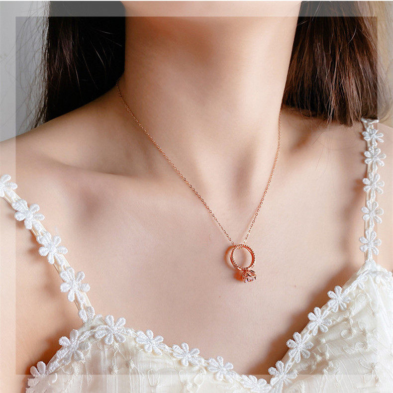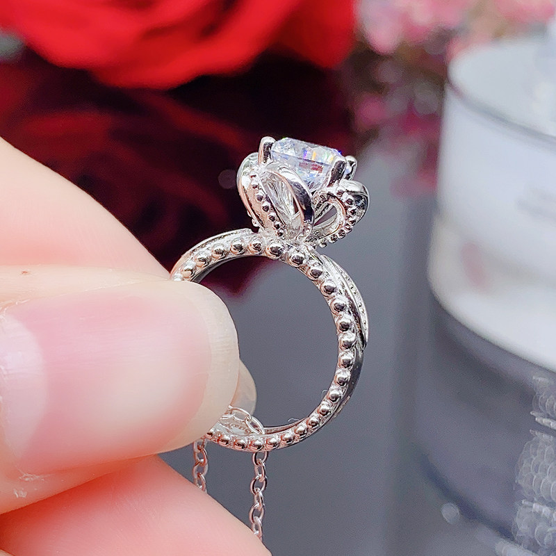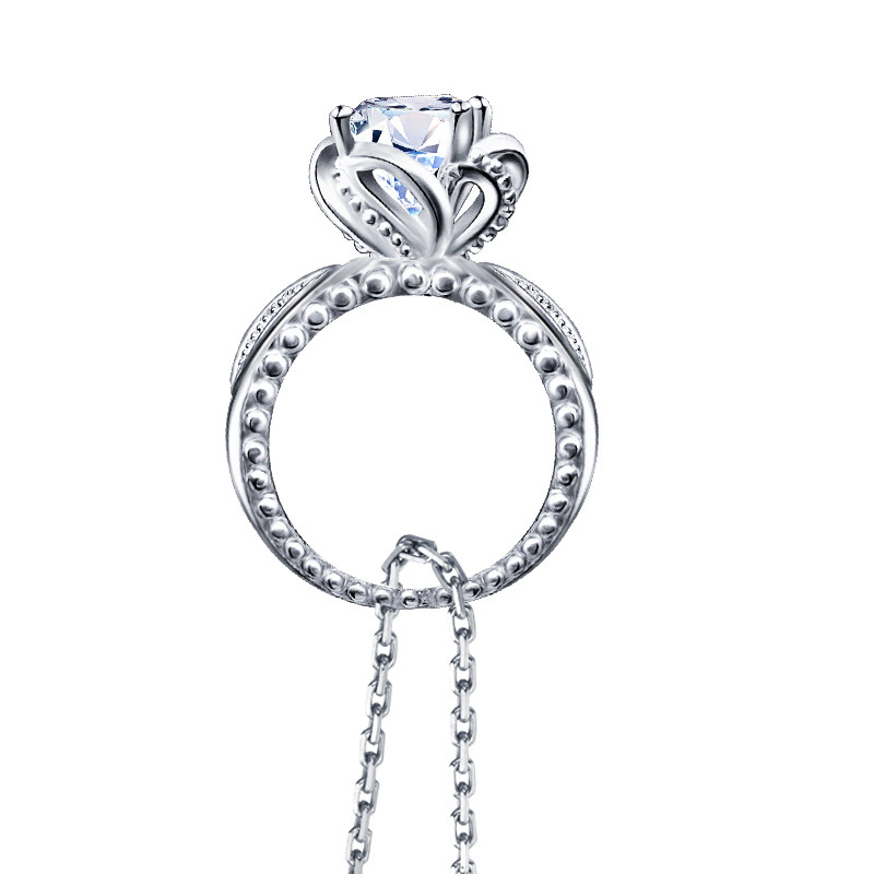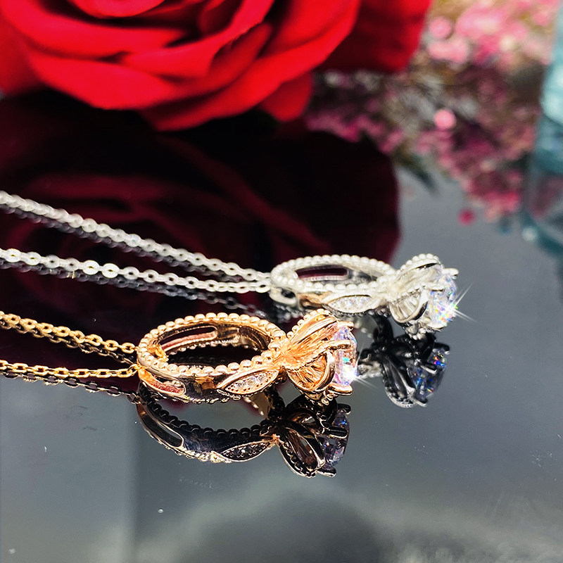 18K white gold imported moissanite group inlaid flower bud ring necklace 1 carat rose gold two-wear sterling silver clavicle chain