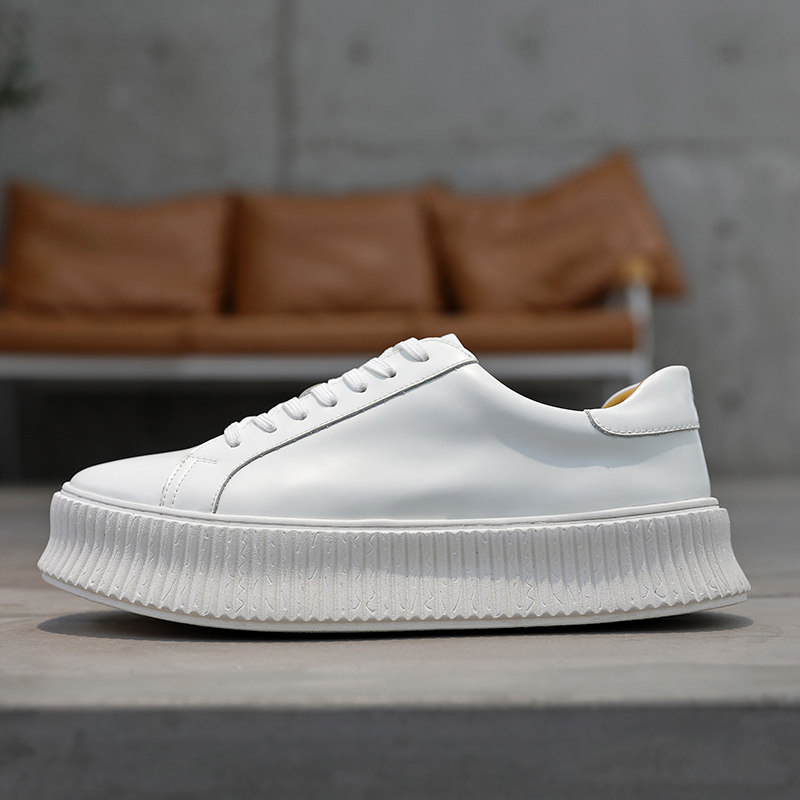 Hong Kong tide brand leather white shoes men's simple and versatile trend thick-soled men's shoes supreme explosion student skate shoes