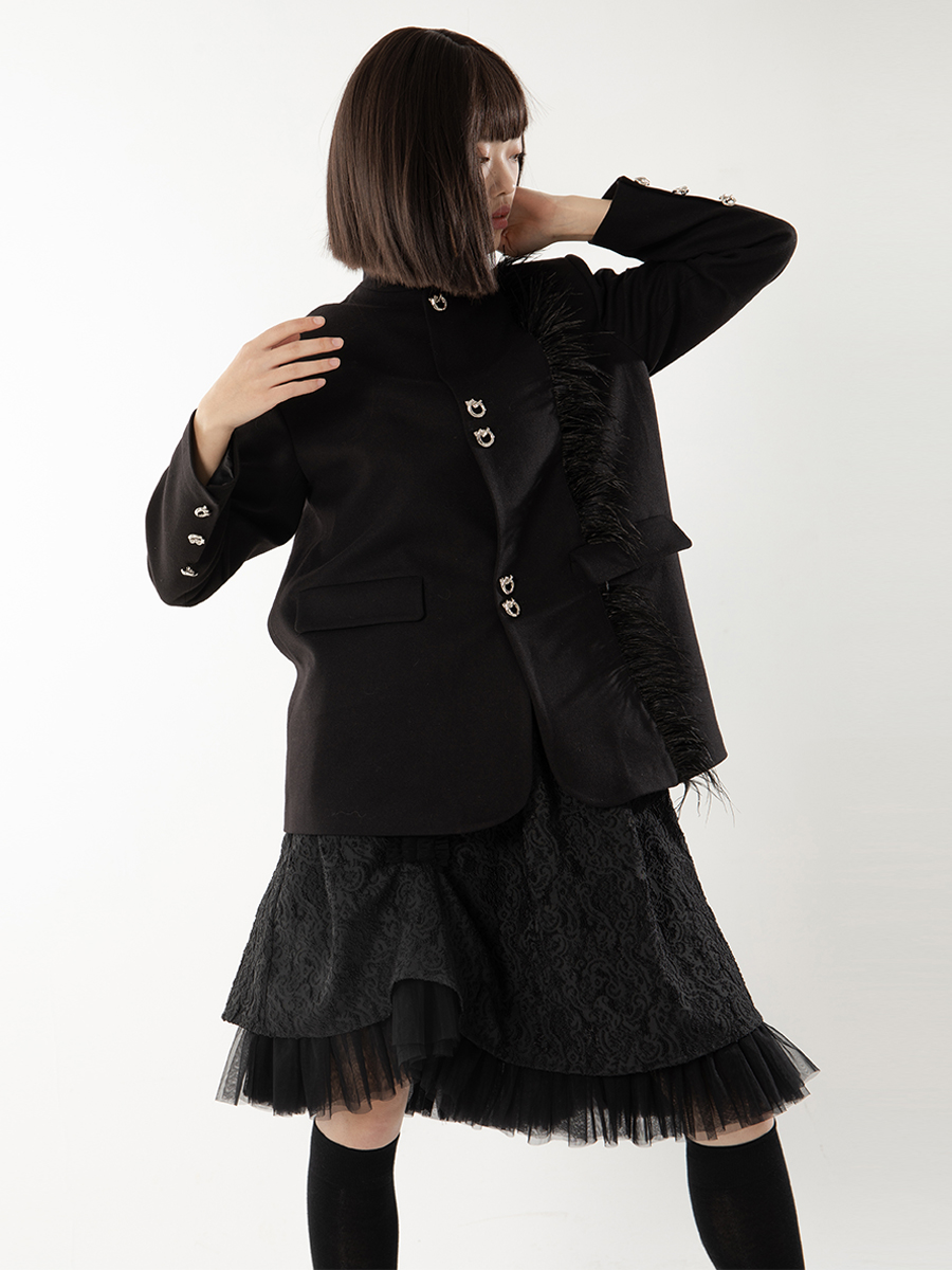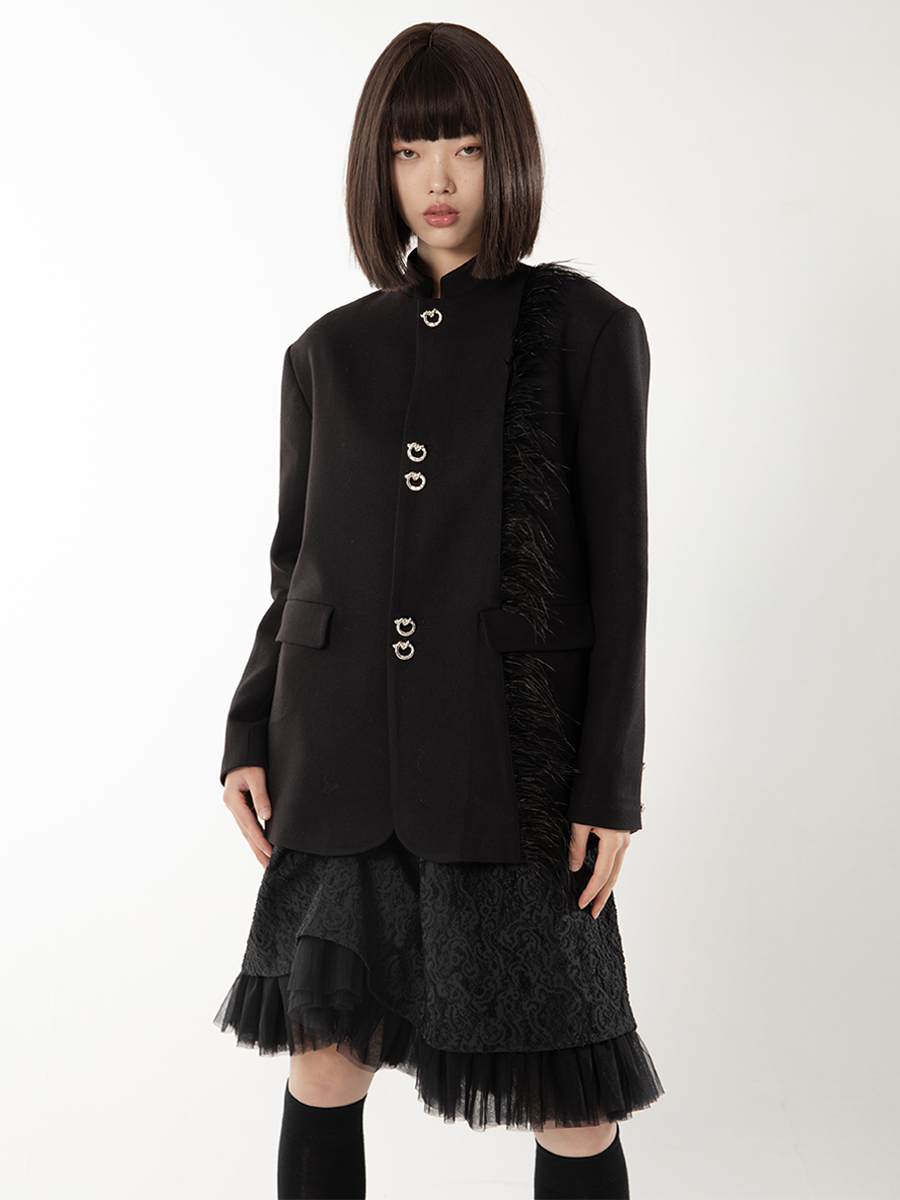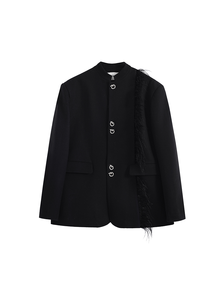 ECCE HOMO 21AW ostrich Mao Chinese-style collar suit sweet and cool metal button for autumn and winter fur coat