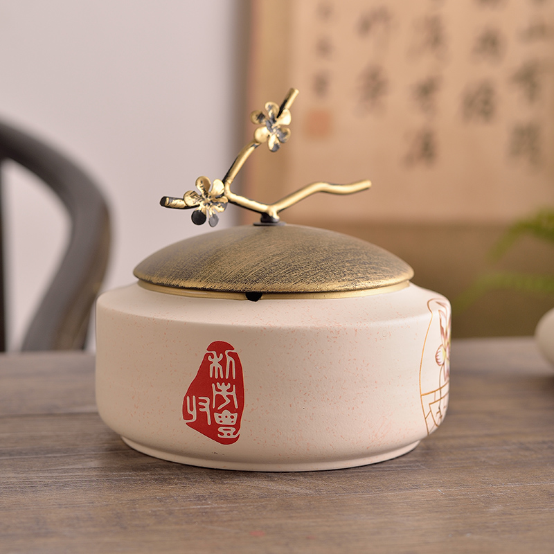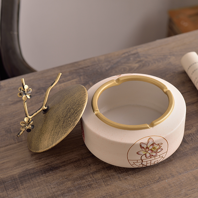 New Chinese Ceramics Tobacco ashtray with lid Zen ideas Creative Personality Living Room Tea Table Office Desktop Windproof Smoke Cylinder
