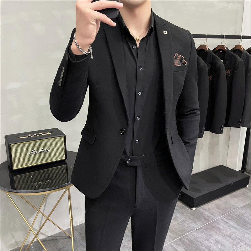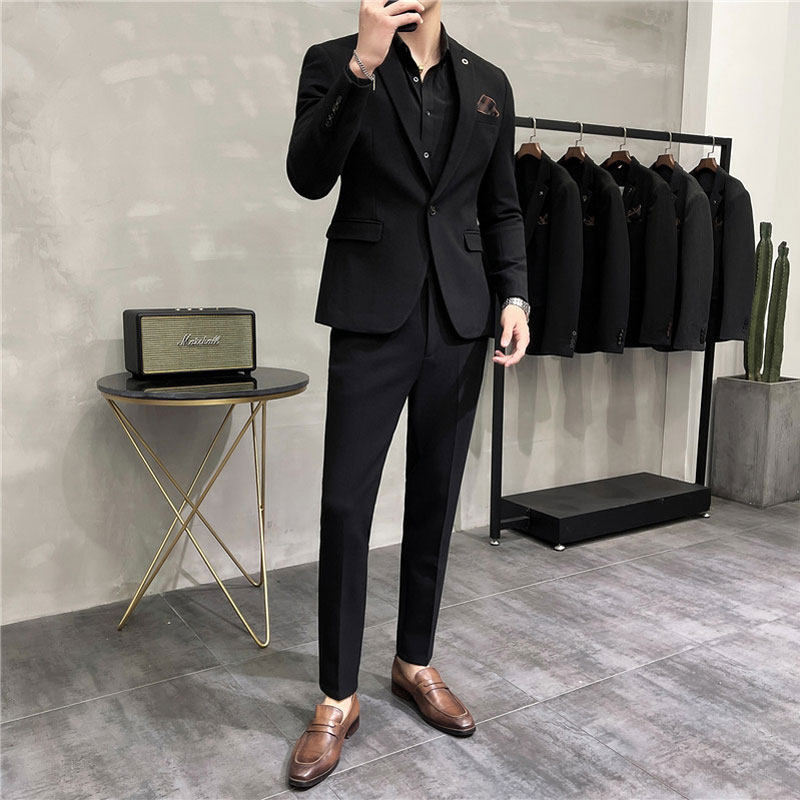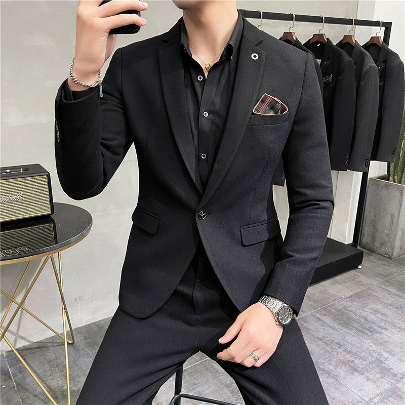 Dark grey (suit pants) collection delivered (black shirt hidden green tie) black (suit pants) collection delivered (black shirt hidden green tie) dark grey (single suit) black