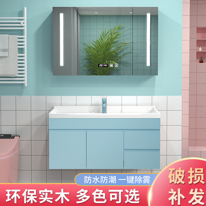 Color bathroom cabinet combination solid wood modern smart mirror cabinet toilet integrated washstand washbasin - Taobao