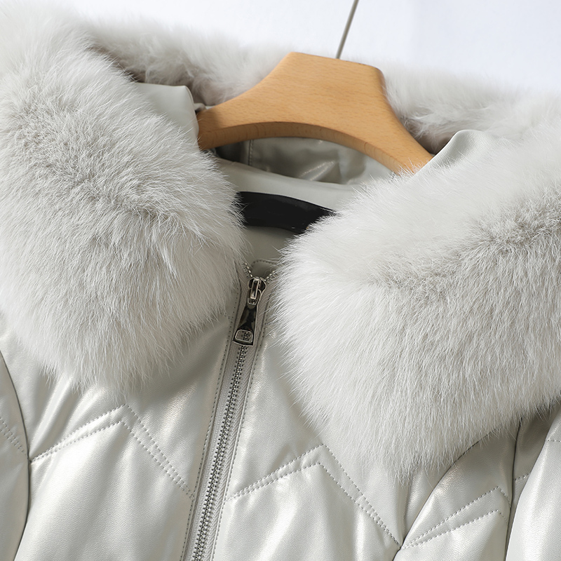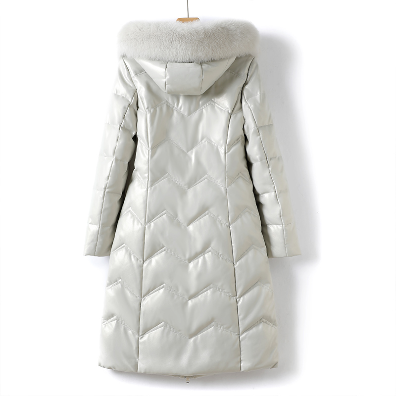 Down jacket woman in woman's body long version of fox fur collar Even hat sheep leather female real leather anti-season thickened leather coat white duck suede