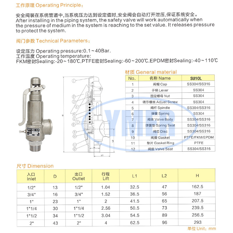 Stainless steel full-start safety valve steam adjustable spring type large displacement tank boiler pipe overflow pressure relief valve