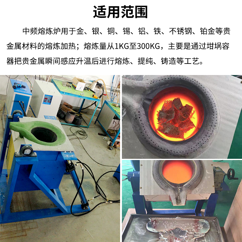 Intermediate frequency 15KW melting furnace + 10 kg burner intermediate frequency 25KW melting furnace + 20 kg hand-cranked furnace intermediate frequency 35KW melting furnace + 30 kg hand-cranked intermediate frequency 45KW melting furnace +