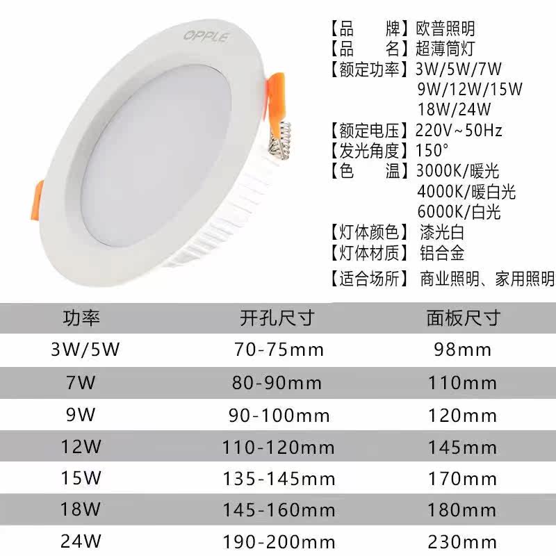 5W (white light) bore 7-8cm5W (warm white light) bore hole 7-8cm5W (three-color variable light) bore 7-8cm7W (white light) bore 8-10cm7W (warm)