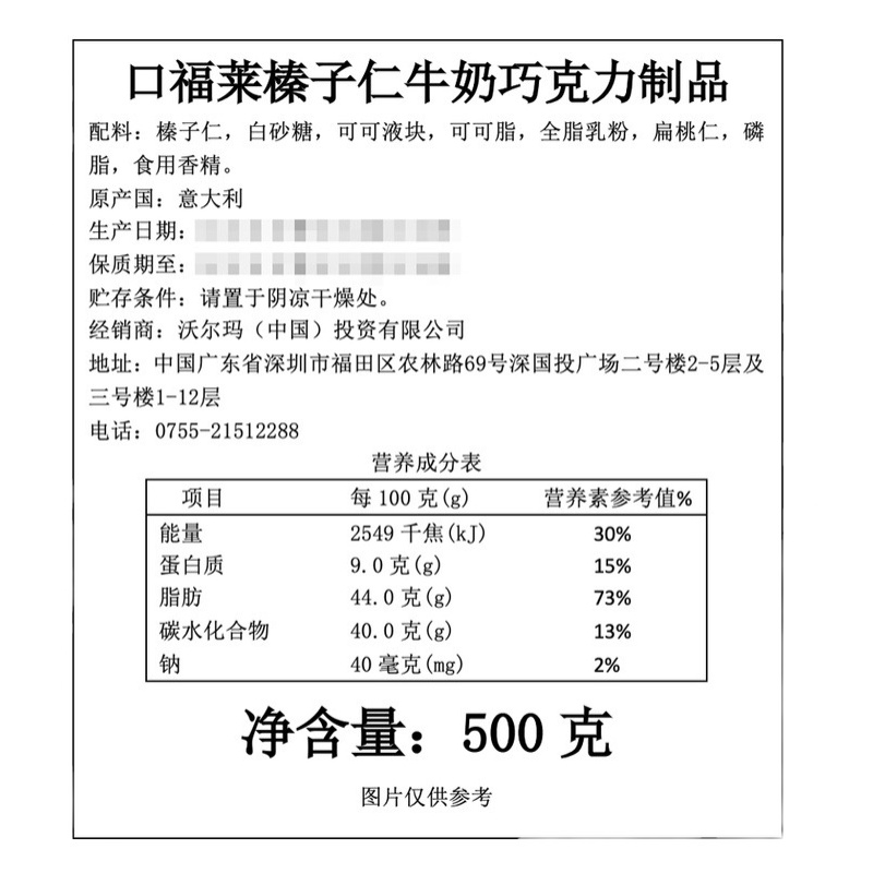 Sam Caffarel mouth Fleet Italy imported hazelnut milk chocolate products 500g box