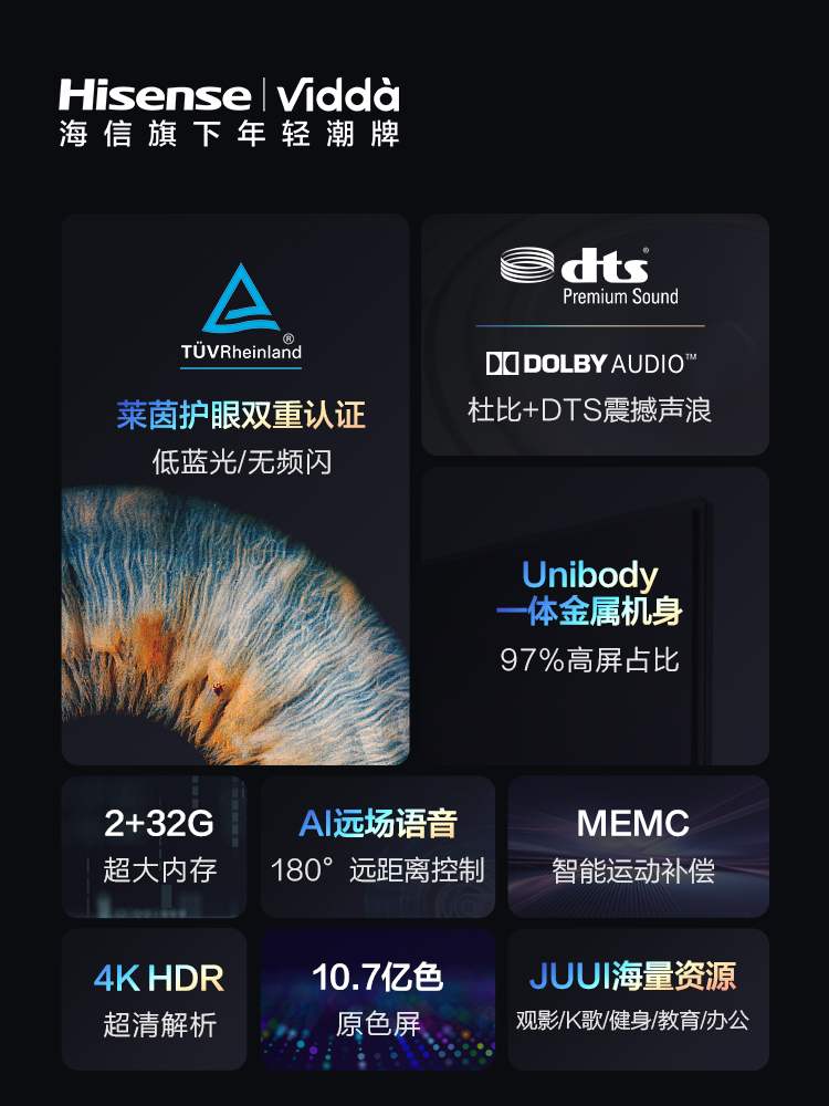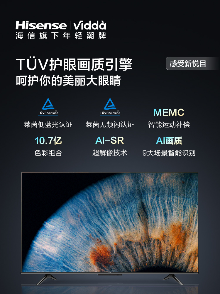Hisense Vidda 65V1F-S 65-inch 4K HD voice-activated full-screen smart LCD TV 70 S65