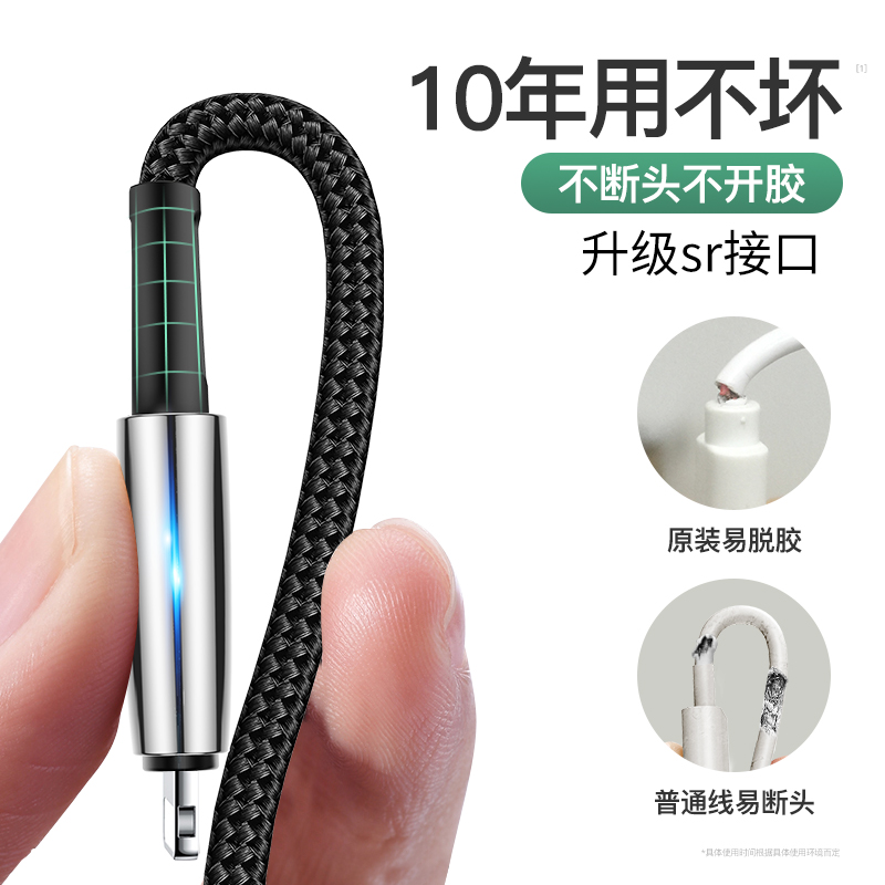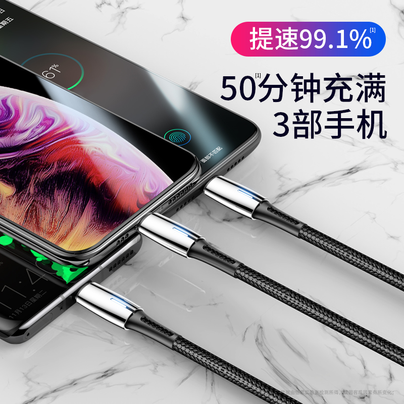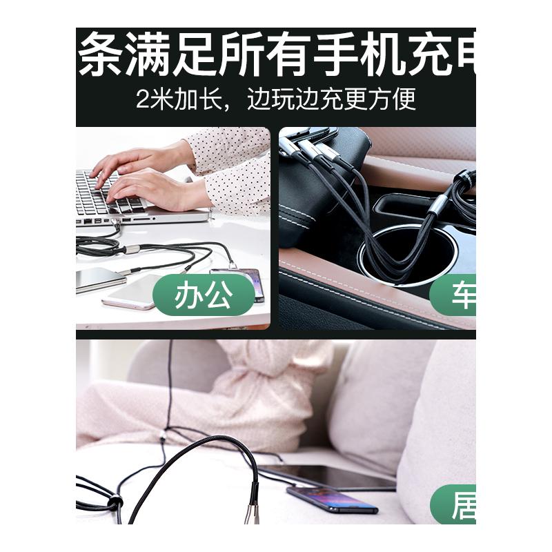 Data line three-in-one mobile phone charging wire device 2 m-one-drag triple-fast charging three heads suitable for Apple Android two-in-one vehicle bulls Huawei 5a lengthened triple-use punching short portable