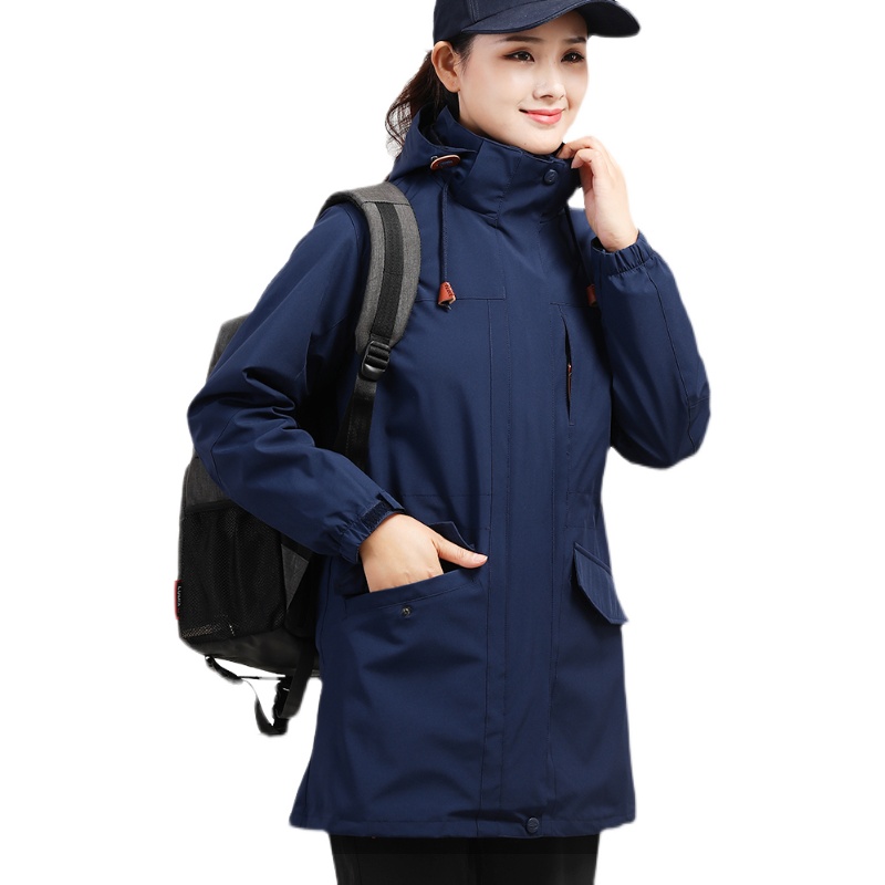 Winter jacket women's new three-in-one detachable men's windproof waterproof mid-length ski mountaineering jacket mother