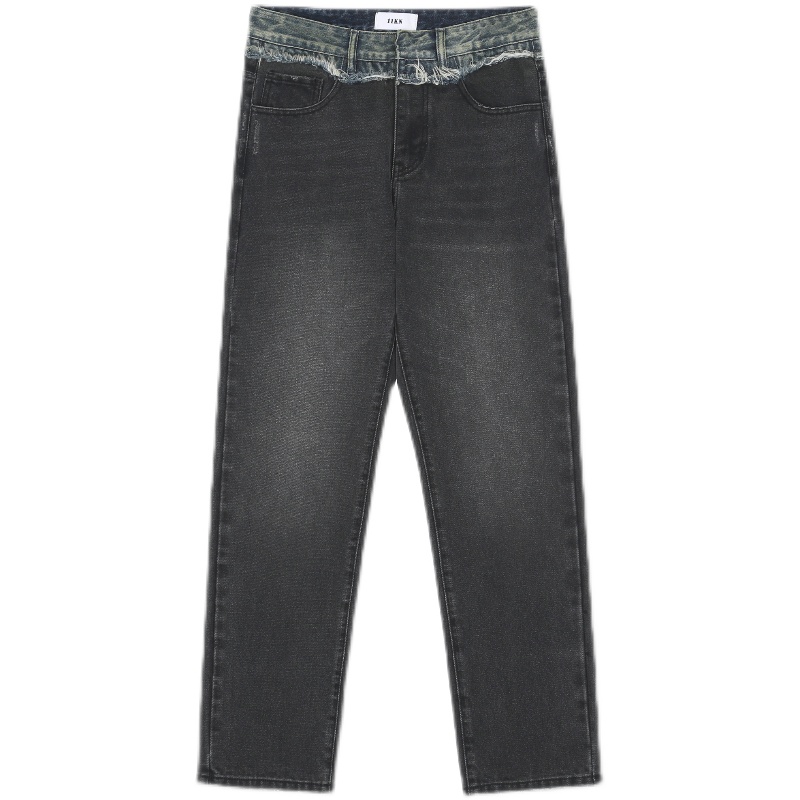 CTB Beer Captain American retro stitching black jeans men's washed and old straight pants street tide