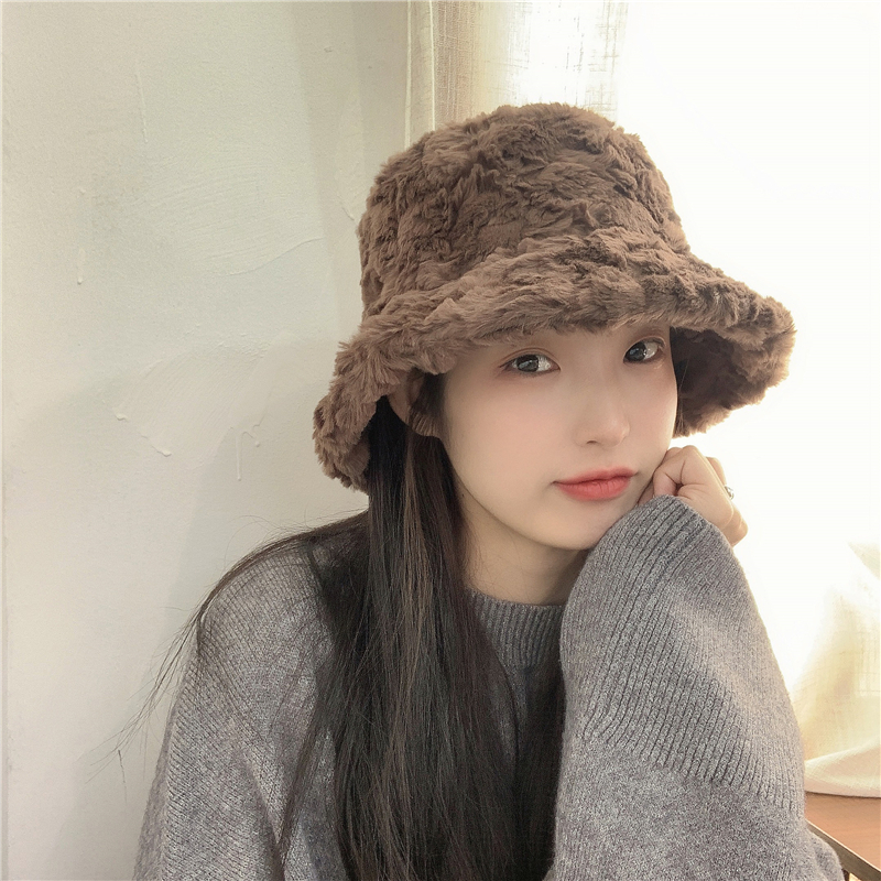 Cailin Kelin Japanese plush fisherman hat women's autumn and winter warm all-match sweet temperament face small basin hat