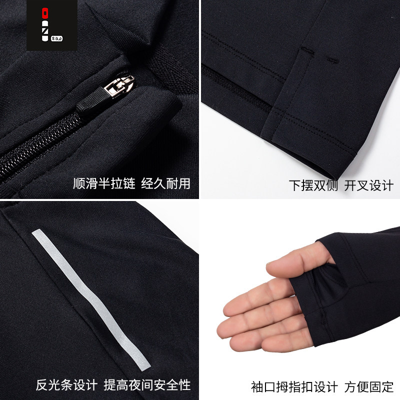 Zero resistance running sports long-sleeved men's spring, autumn and winter marathon outdoor fitness quick-drying plus velvet half-zipper T-shirt women