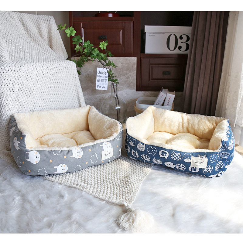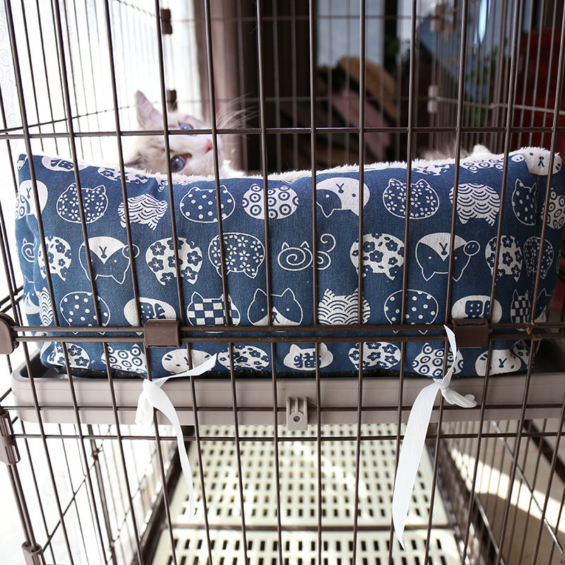 Cat litter winter warm cage platform can be bundled with fixed rope short plush pad kennel small and medium dogs