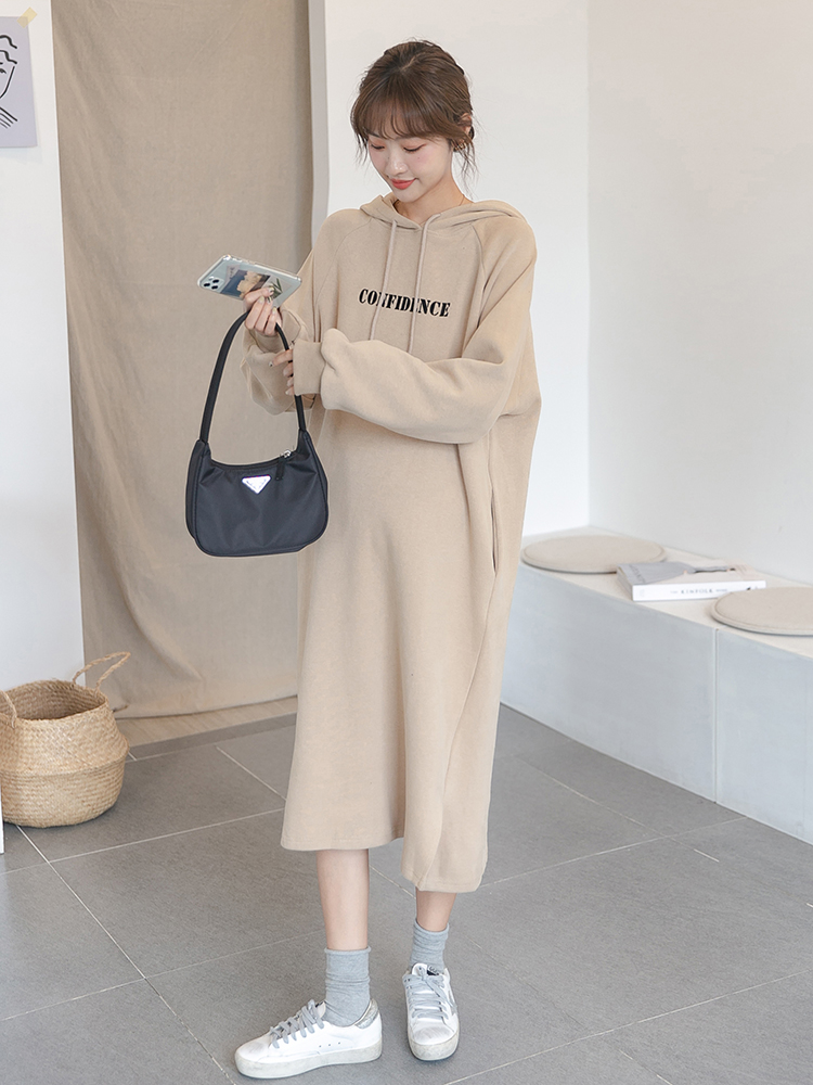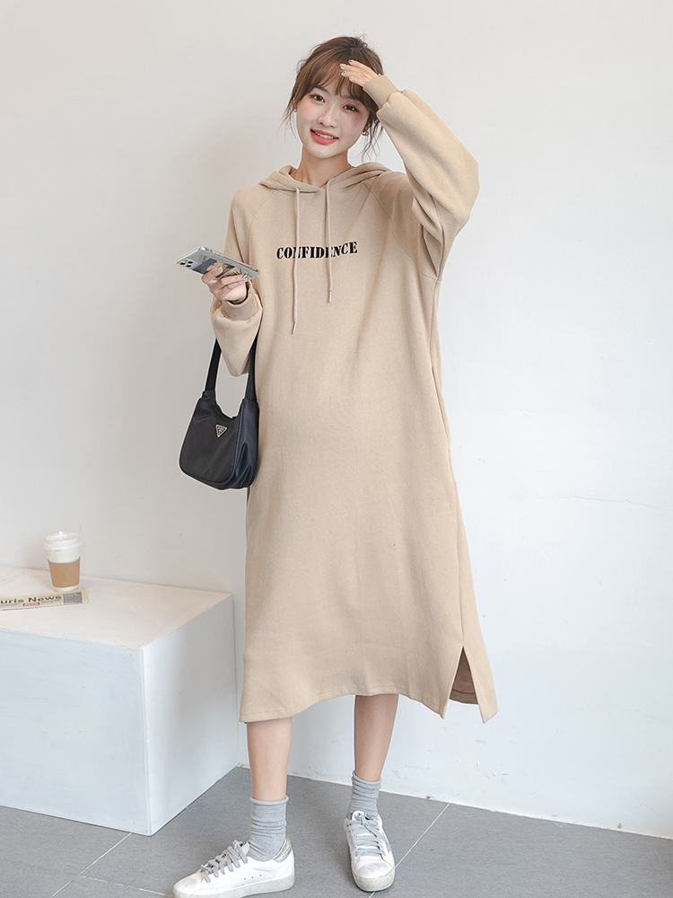 Pregnant Women's Clothing Spring Clothing Fashion style Han version Leisure loose Long version plus suede autumn Winter letters Lianhood Bottletide Moms
