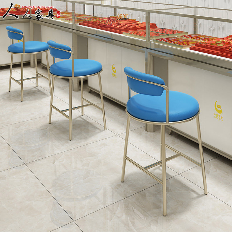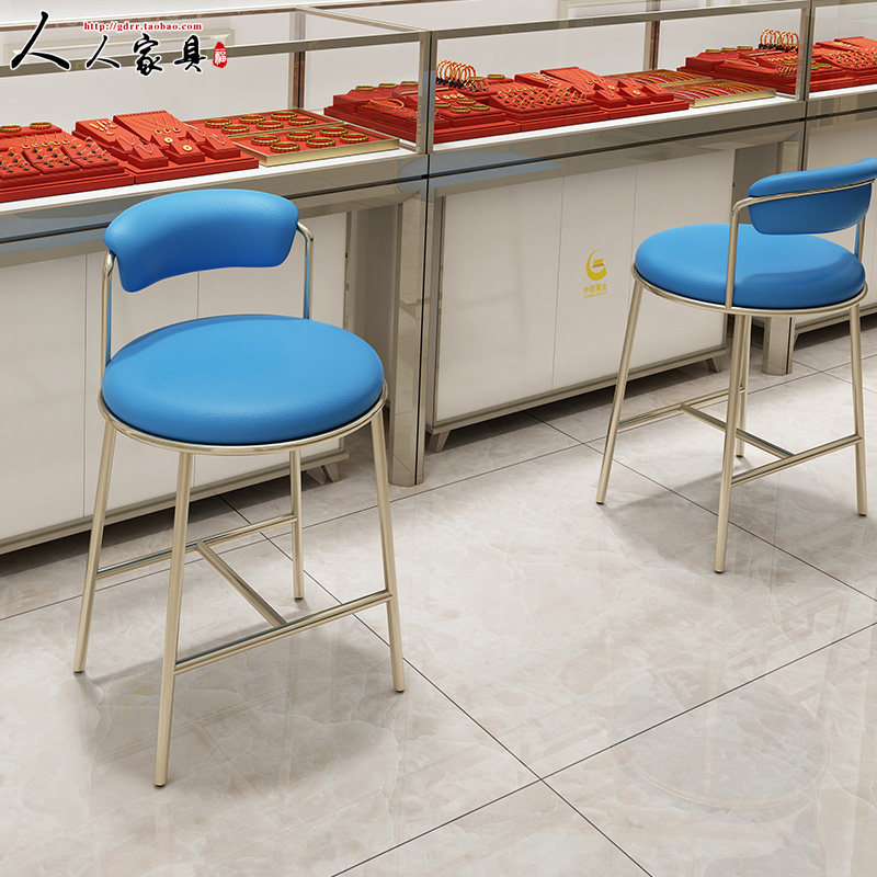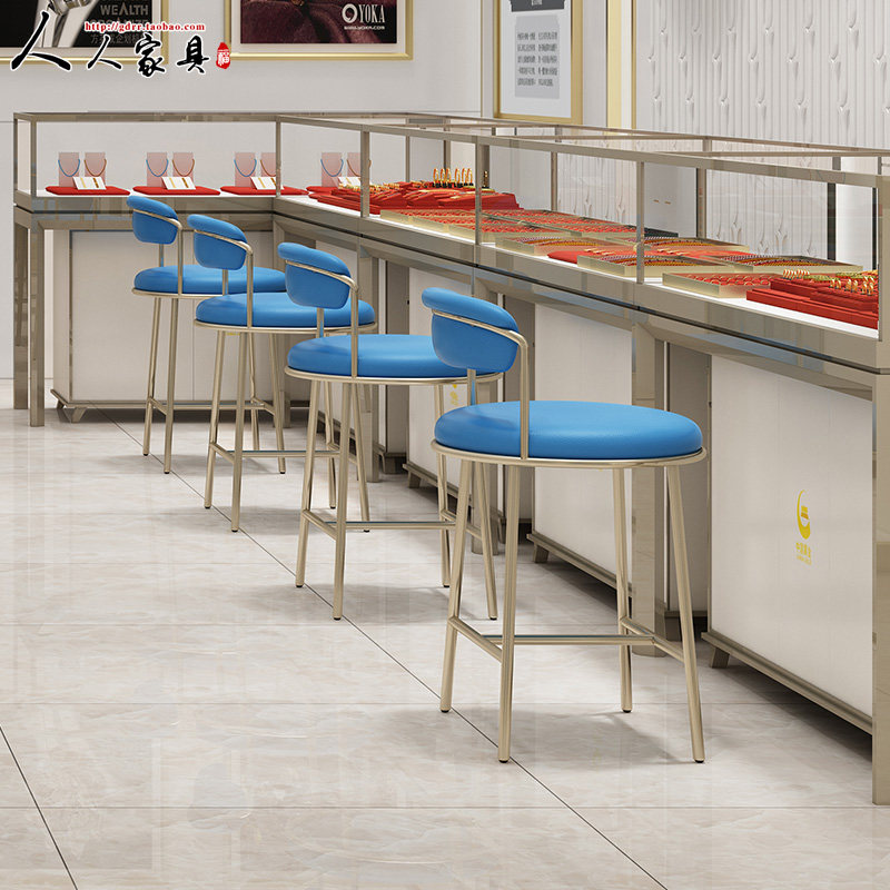 Jewelry Store Exclusive Chair Front Desk Counter Reception Chair Bar Bench Stainless Steel Backrest High Footstool Brief Jewel Bench