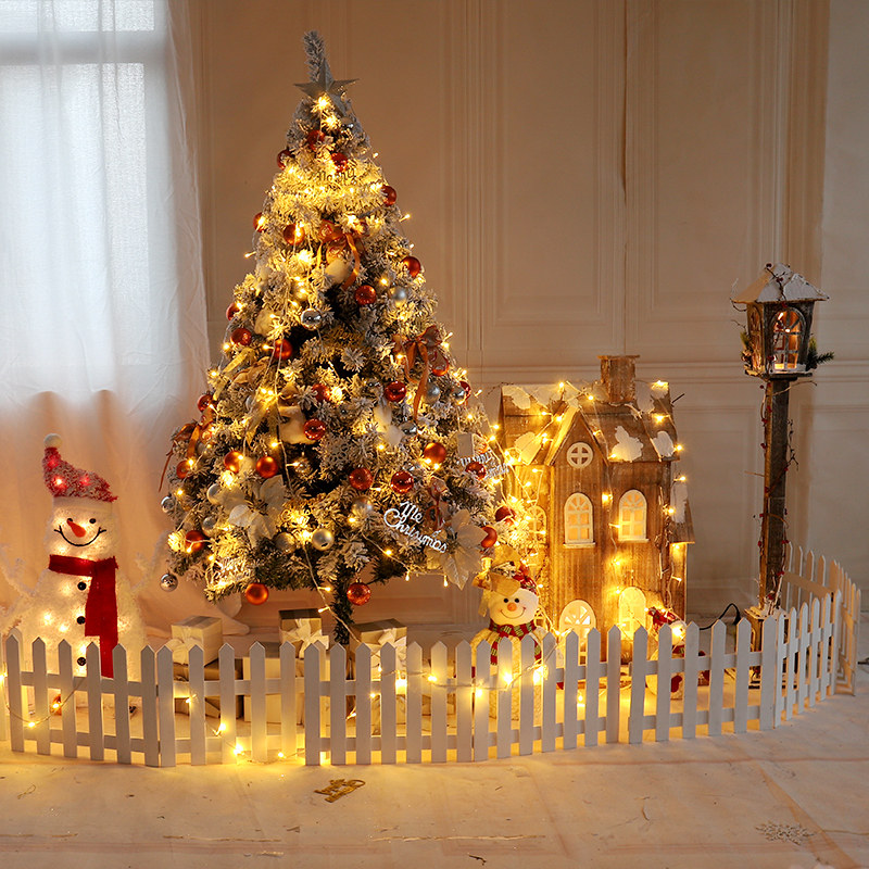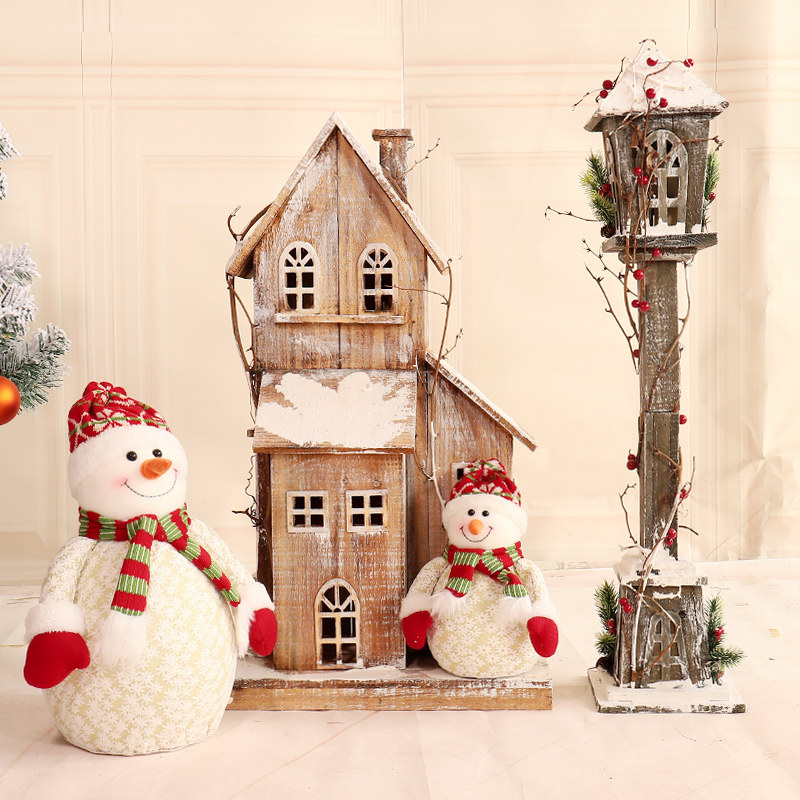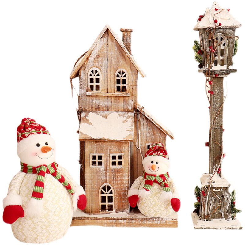 Christmas Scene Decorated Wooden House Castle with lights shining Christmas Tree Package Hotel Large Mei Chen Profile Street Lights