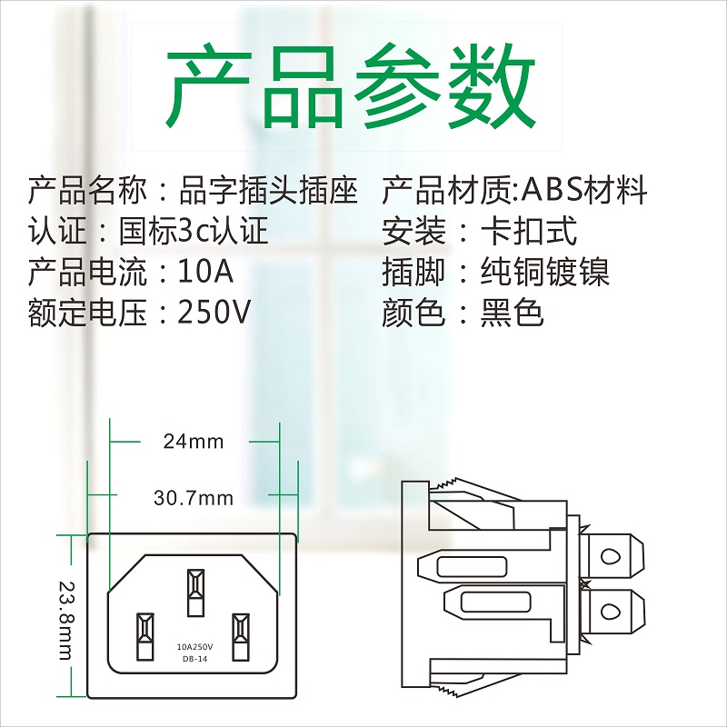 Pindword socket Three-foot male socket AC mother seat three-hole C14 220V10A card power cord plug male