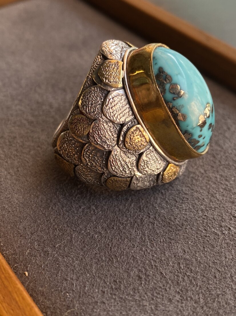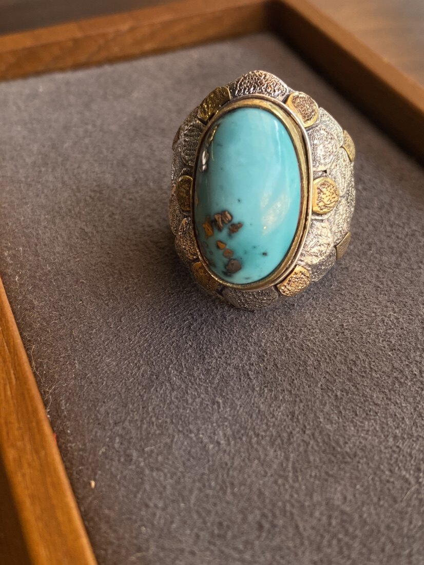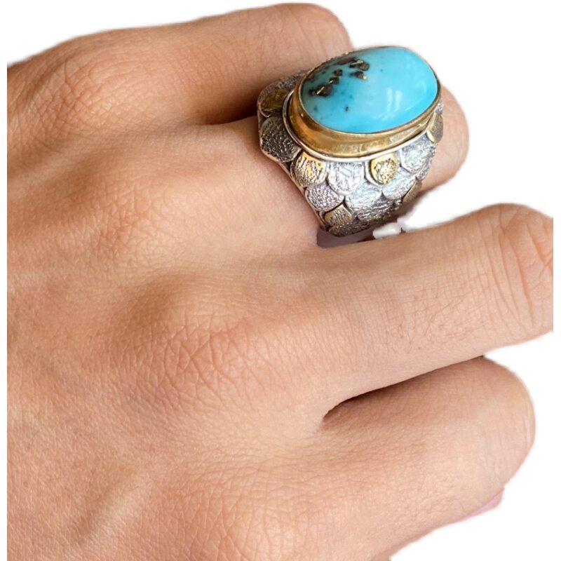 Nepal handmade design mermaid tears seiko custom Iranian blue turquoise natural patch ring
