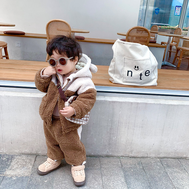 AXiaoxuan baby plush children in winter warm warm cotton sweater cotton pants boy cute bear coat