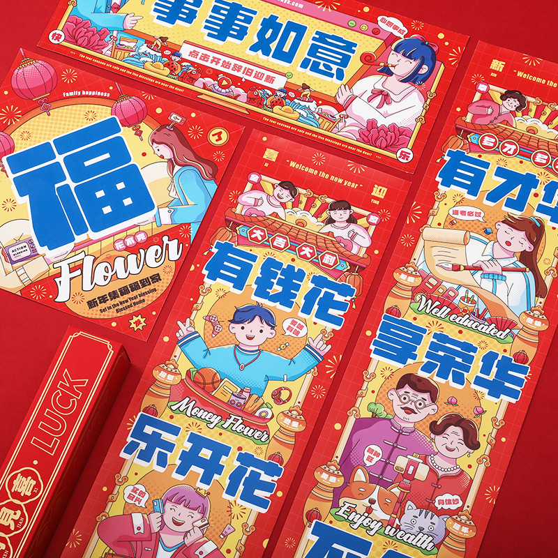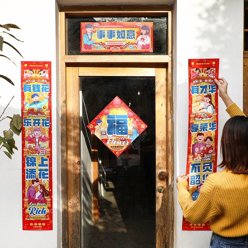 2023 Couplets Spring Festival Home Rabbit Year Creative Cute New Year Door Fuzi Door Stickers Spring Festival Couplets High-end Group Purchase Customization