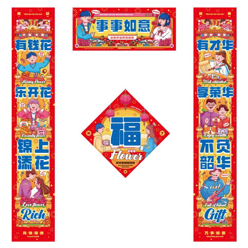 Everything is going well (left and right joint, horizontal batch, blessing), everything is successful (left and right joint, horizontal batch, blessing), happy home (left and right joint, horizontal batch, blessing)
