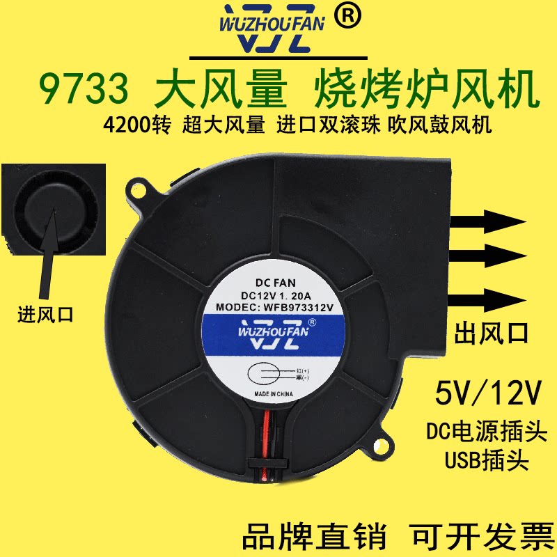 9733 5V USB heating stove Outdoor firewood stove Big air blower 12V Barbecue Fan Speed Regulator