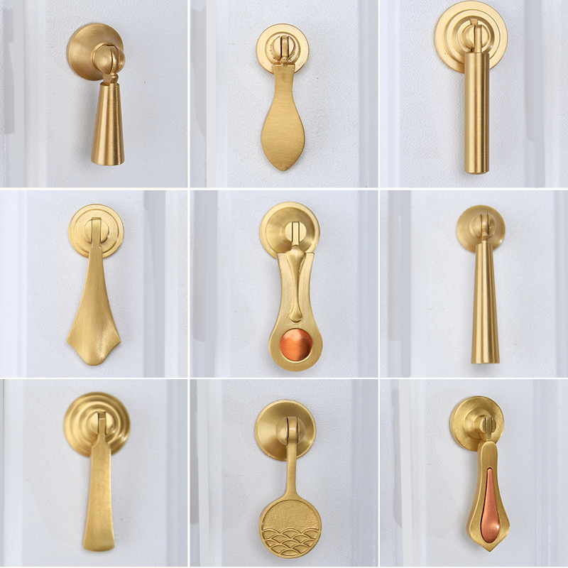 New Chinese-style drawer copper handle solid wood furniture wardrobe door? Car wine cabinet light luxury single hole antique pure brass handle