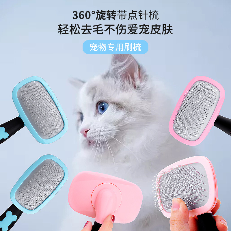 Pet massage needle comb-pink pet massage needle comb-blue pink-one-key removal of hair pet brushed blue-one-key removal of hair pet brushed pink massage needle comb nail clippers blue massage needle comb