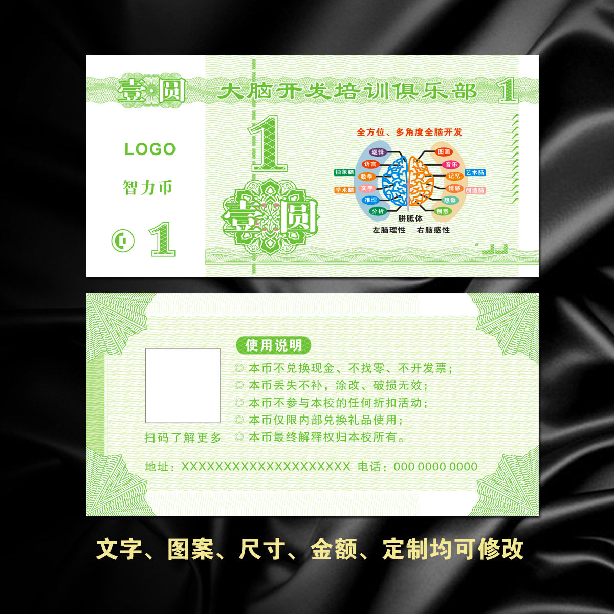 Customize Brain Development Reward Coin to produce Accumulated Coin Elementary School Children Banknotes Training Institution Bancoin Study Coin