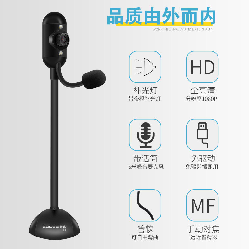 Gu Ke E5 Computer Lens Desktop Notebook Computer External Camera HD Desktop Network Class with Microphone Special USB Interface for Class No Drive with Microphone Movie Vertical Photography