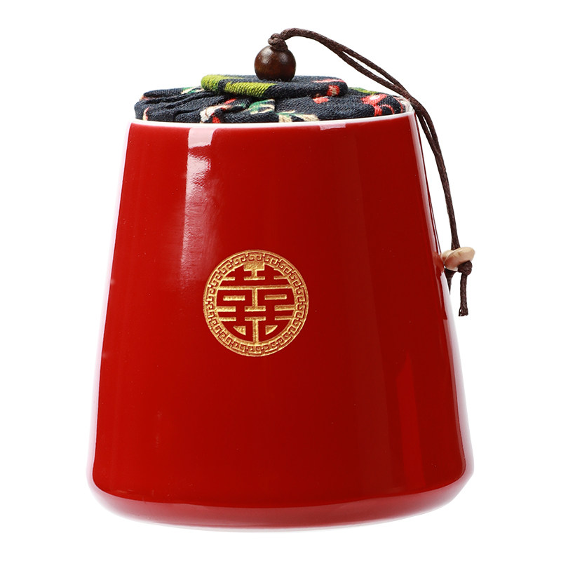 Wedding candy jar ceramic wedding dowry red jujube jar dowry white sugar jar practical hand gift bride