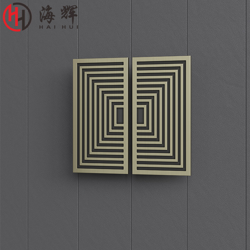 Chinese square large door handle imitation antique bronze glass door handle hotel bag compartment single double switch solid wood door handle custom