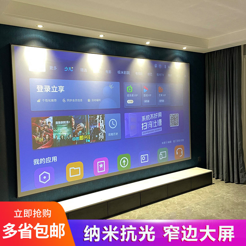 Extreme Rice Nuts Anti-light Frame Curtain Projector Home Curtain 100 Inch 120 Inch Narrow Rim Grey Crystal Wall-mounted Screen-Taobao