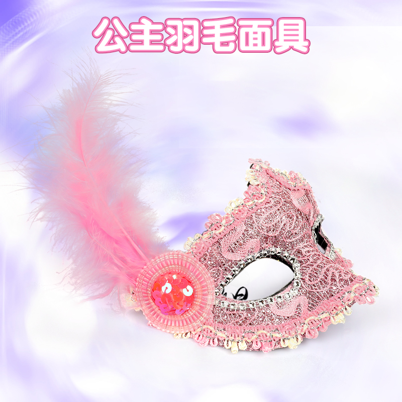 girl pink princess feather mask children christmas gift ball glow dress up half face party show props