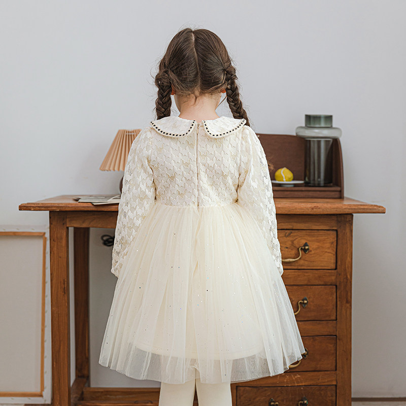 Boat Rat Princess Dress Girl Winter Dress Plus Suede Thickened Children's Dresses Winter Style 2021 New Foreign Pine Lace Dress