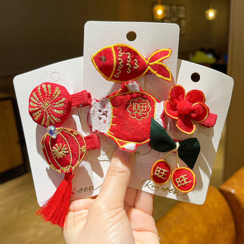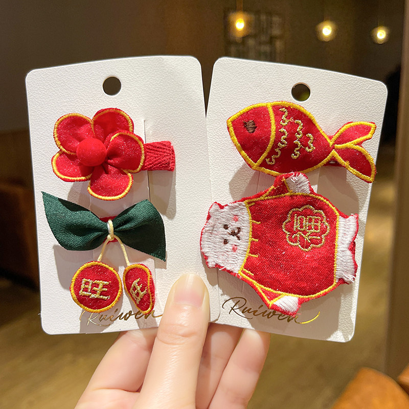 1# red double hair ring 2-piece set 2# red apple hair ring 2-piece set 3# red rich hair clip 2-piece set 4# red double Ji hair clip 2-piece set