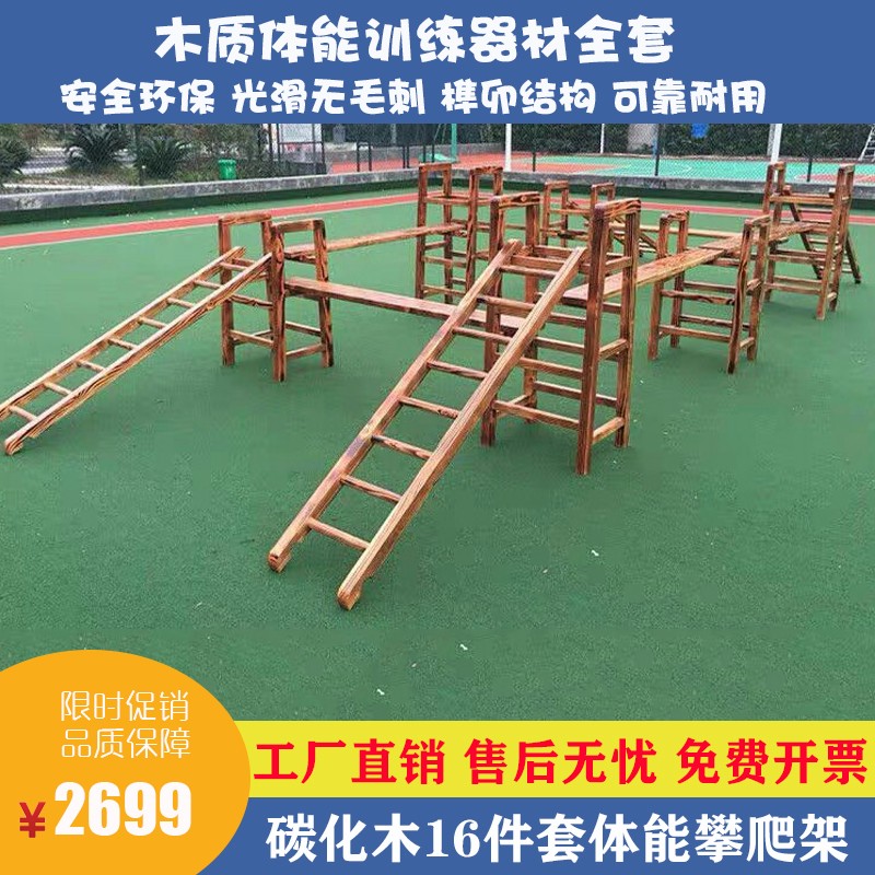 Children's outdoor carbonized climbing frame sensory integration training combination 16-piece kindergarten wooden game physical balance board