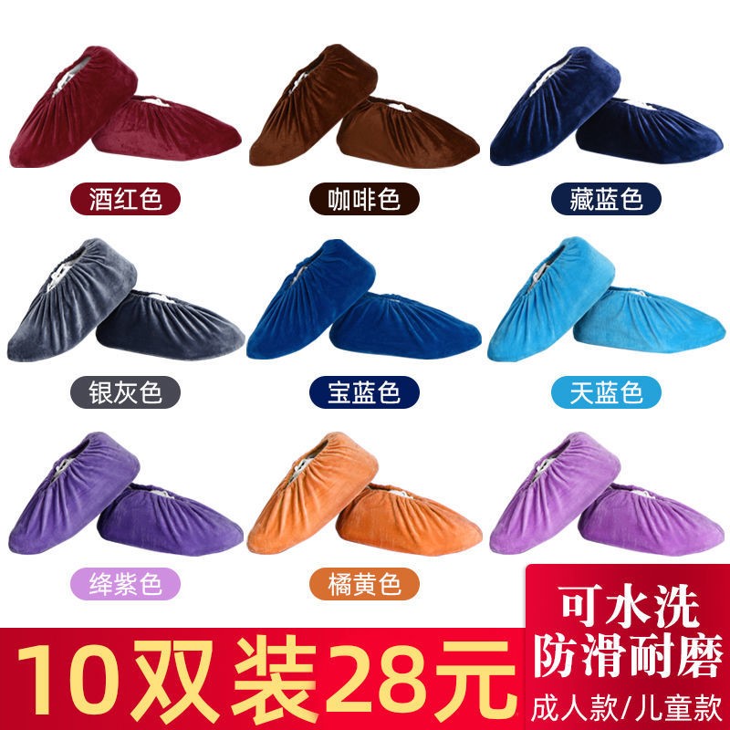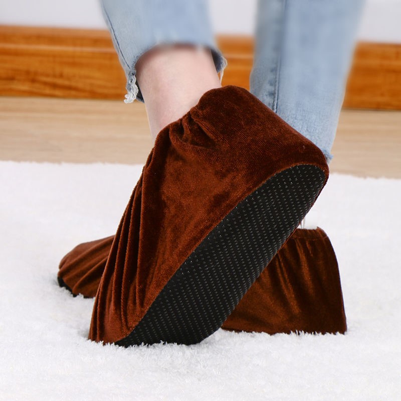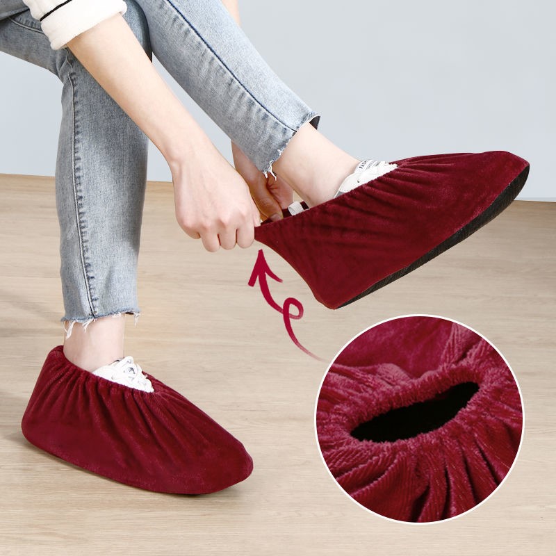 Shoe cover household fabric can be washed repeatedly thickened non-slip wear-resistant indoor flannel foot cover student computer room children adult