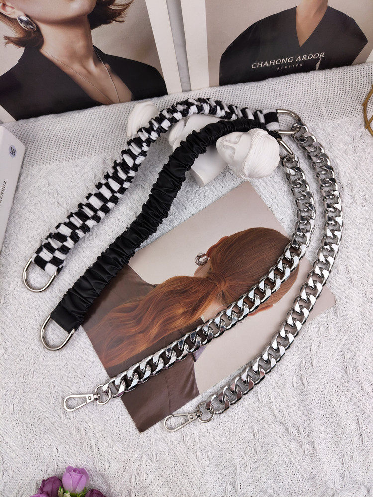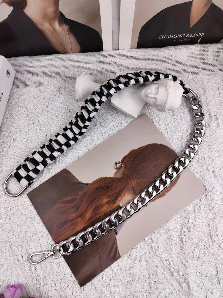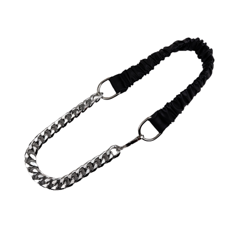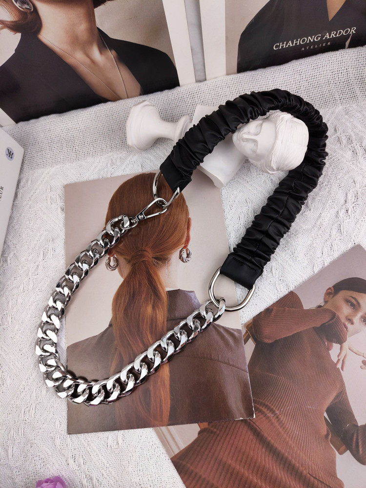 Pure black elastic leather splicing silver chain waist chain velvet black elastic leather splicing silver necklace waist chain black and white lattice elastic leather splicing silver chain waist chain