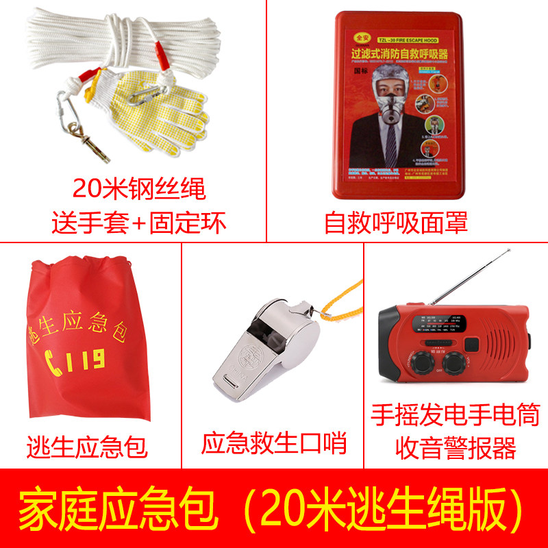 Hand-cranked flashlightHand-cranked flashlight Radio sirenFamily escape bag (simple three-piece set)Family escape bag (standard three-piece set)Family escape bag (10m escape rope version)Family escape