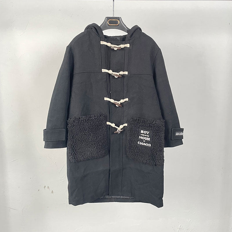 World * Brand Winter Boys Even hat unremovable warm wool clip cotton single row horn button long version of the big coat