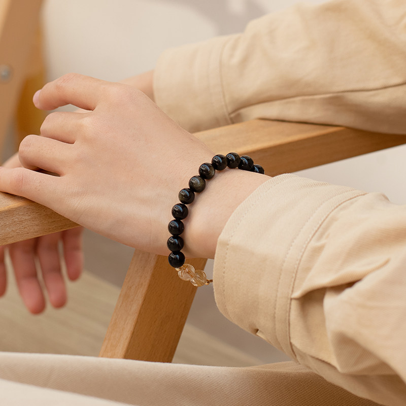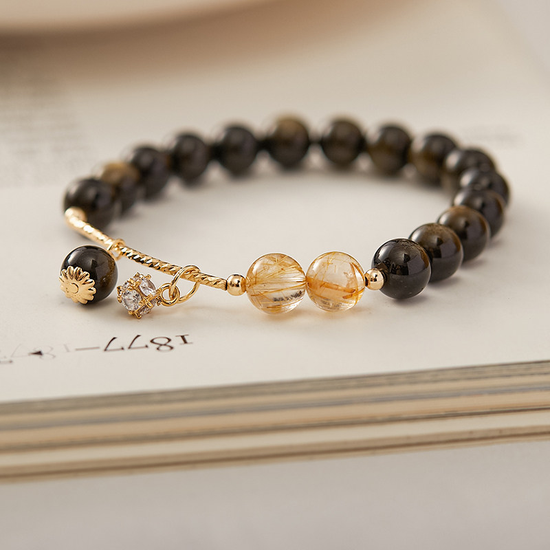 Natural obsidian bracelet female in small design light luxury delicate blonde crystal beads crystal string DIY gift