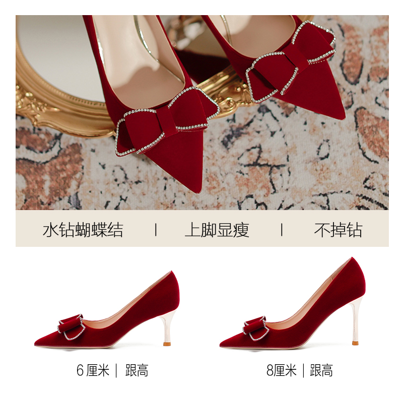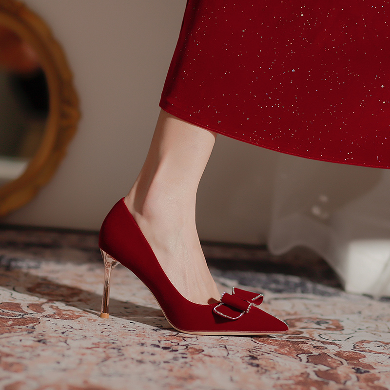 Wedding shoes female bridal shoes 2022 Summer new French style fine heel Show and wedding dress Two wearing red high heels wedding