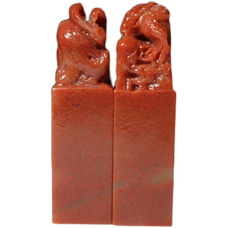 Shoushan Stone Red Stone Seal Octopus Gold Stone Seal Engraving and calligraphy Name Qingtian Inscribed Ancient Play Collection Dragon Phoenix
