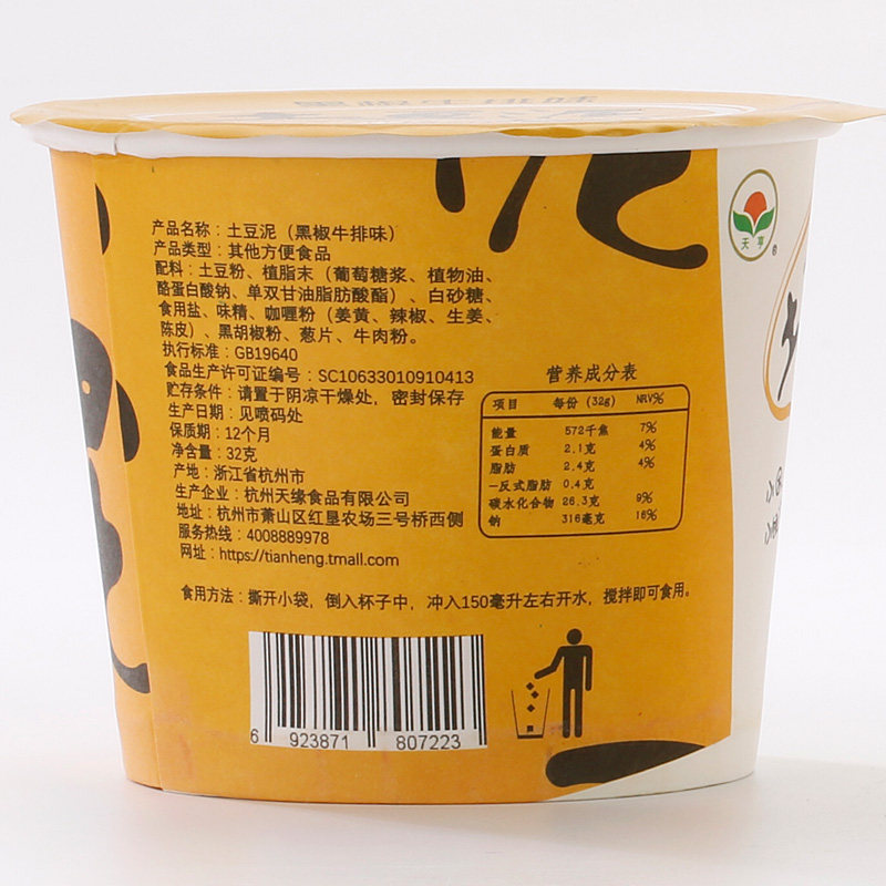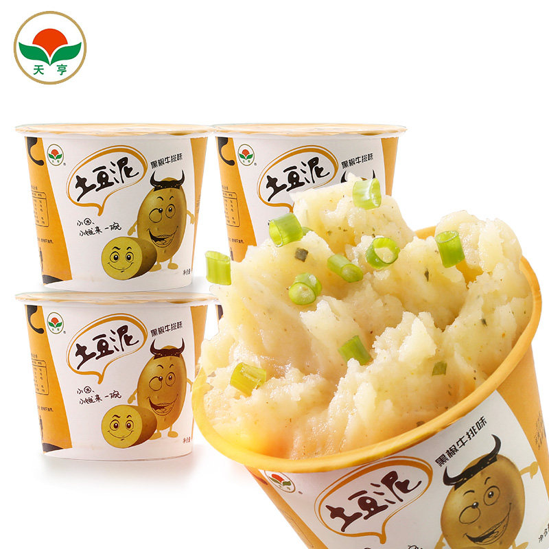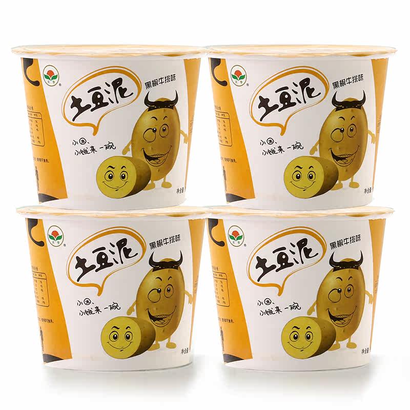 Tianheng mashed potatoes * 4 bowls of black pepper steak-flavored packets ready-to-eat meal replacement hoarding convenient fast-food nutritious breakfast supper