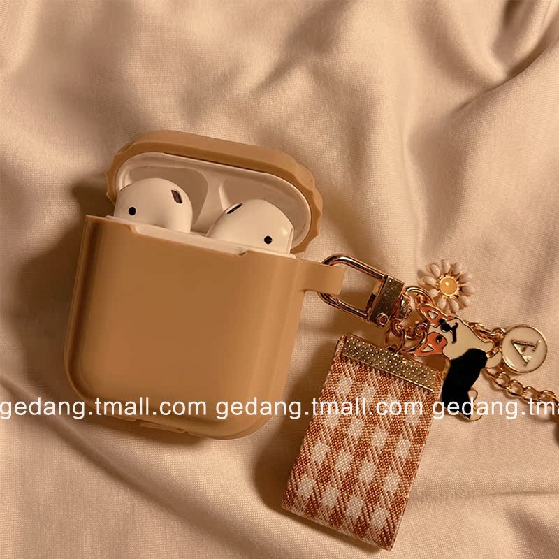 1 2nd Generation Universal (Milk Brown One-Piece Silicone Soft Shell) Plaid Pendant AirPods Pro (Milk Brown One-Piece Silicone Soft Shell) Plaid Pendant AirPods