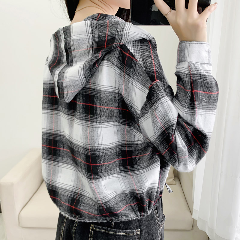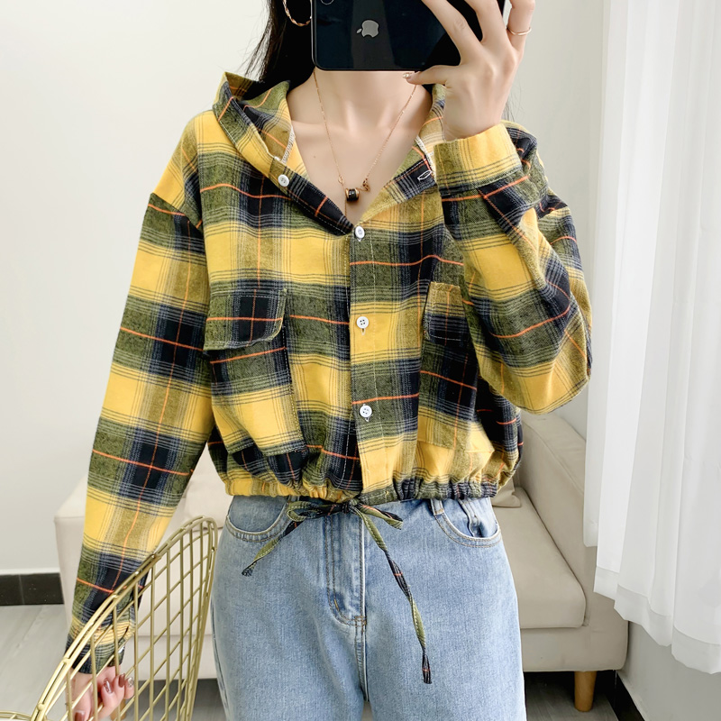 2021 spring autumn new design sensation small crowdlined shirt with cap shirt woman long sleeve 100 lap outside wearing short blouse